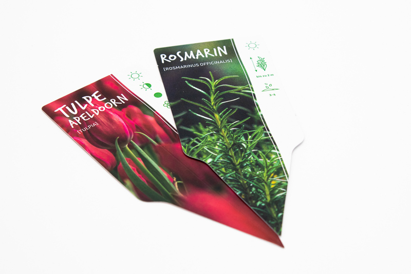Unsere wetterfesten Etiketten für Gärtnereien und Gartencenter bieten eine langlebige Kennzeichnung und einfache Identifikation von Pflanzen. Sie sorgen für klare Informationen und eine ansprechende Präsentation.